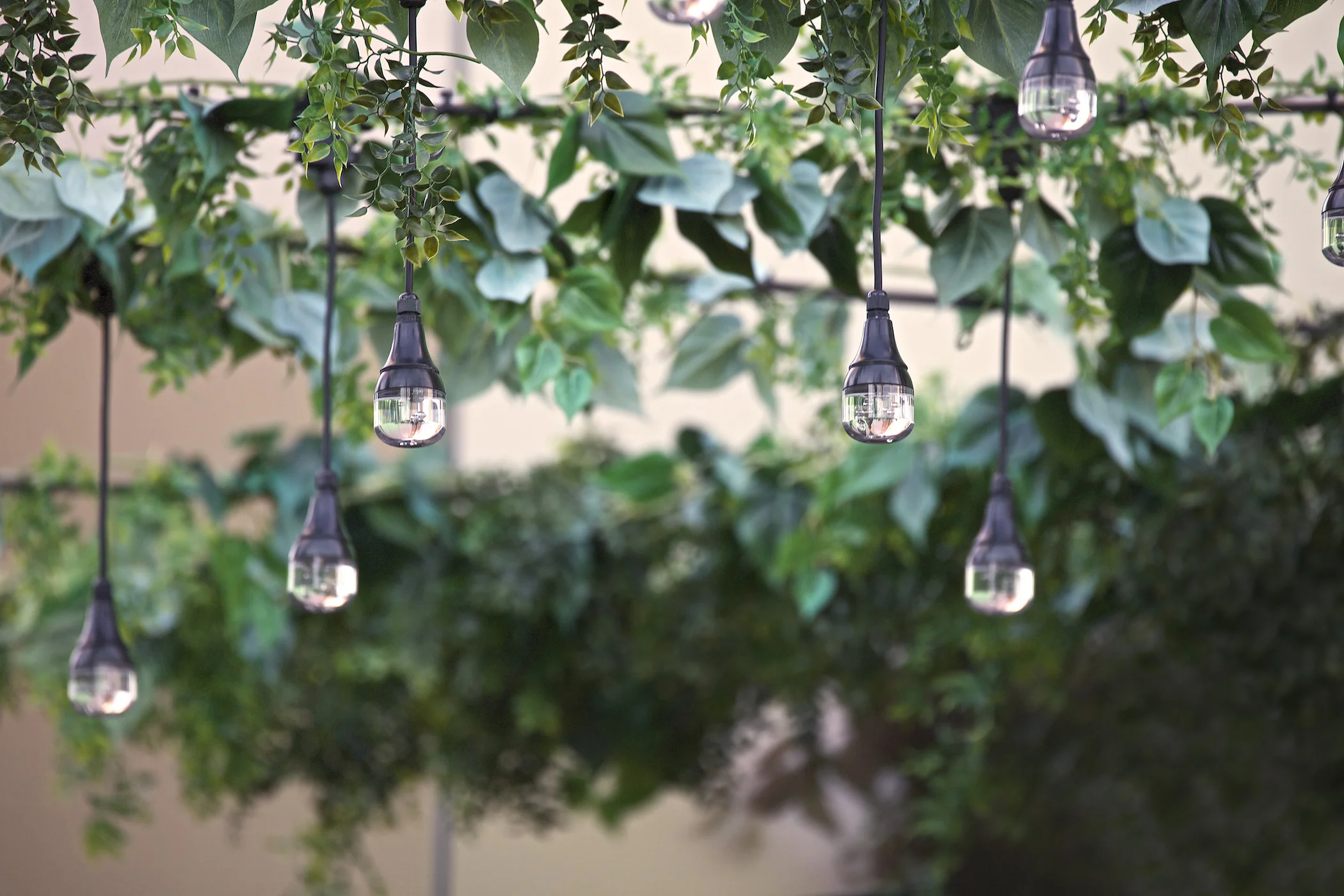 A decorative suspended droplet pendant. Bubble glass creates myriad cosmic beams and effects.