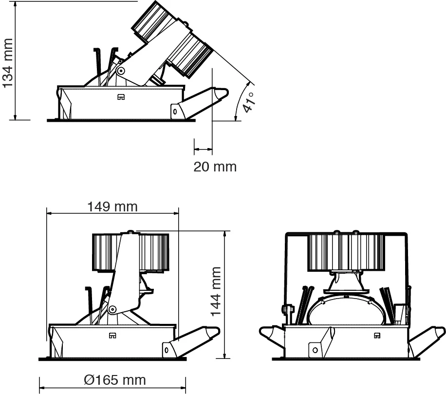 Anodised aluminium reflector and heatsink.